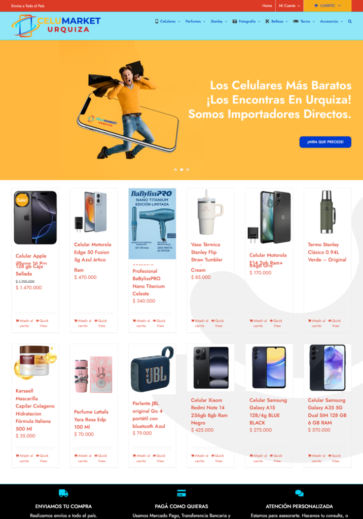 Facilitamos la creación de tiendas online profesionales con WooCommerce, permitiéndote gestionar tu catálogo de productos, procesar pedidos y recibir pagos en línea de forma sencilla. Nuestras soluciones están diseñadas para ser autoadministrables, seguras y completamente adaptadas a tus necesidades comerciales. Además, incluimos integración con redes sociales, botón de WhatsApp y diseño responsivo para una experiencia óptima en cualquier dispositivo.